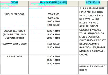 SLIDING DOORS AND SENSOR OPERATED DOORS:-